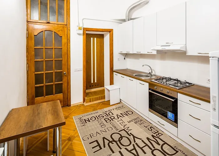 Den är placerad 800 meter från Lvivs universitet och ca 350 meter från Peter and Paul Church of the Jesuit Order. Centrum är beläget ca 1 km från stället och Lviv Danylo Halytskyi internationella flygplats ligger 6 km bort. Gäster kan äta middag på Kryivka och Lvivska Kopalnya Kavy Coffee Manufacture, belägna inom 5 minuters promenad från boendet.